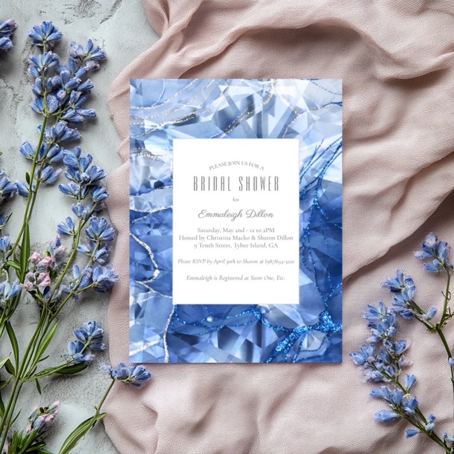 Blue Sapphire Gemstone Cut Bridal Shower Invitation