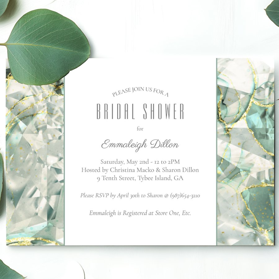 Sage Green Crystal Aventurine Bridal Shower Invitation
