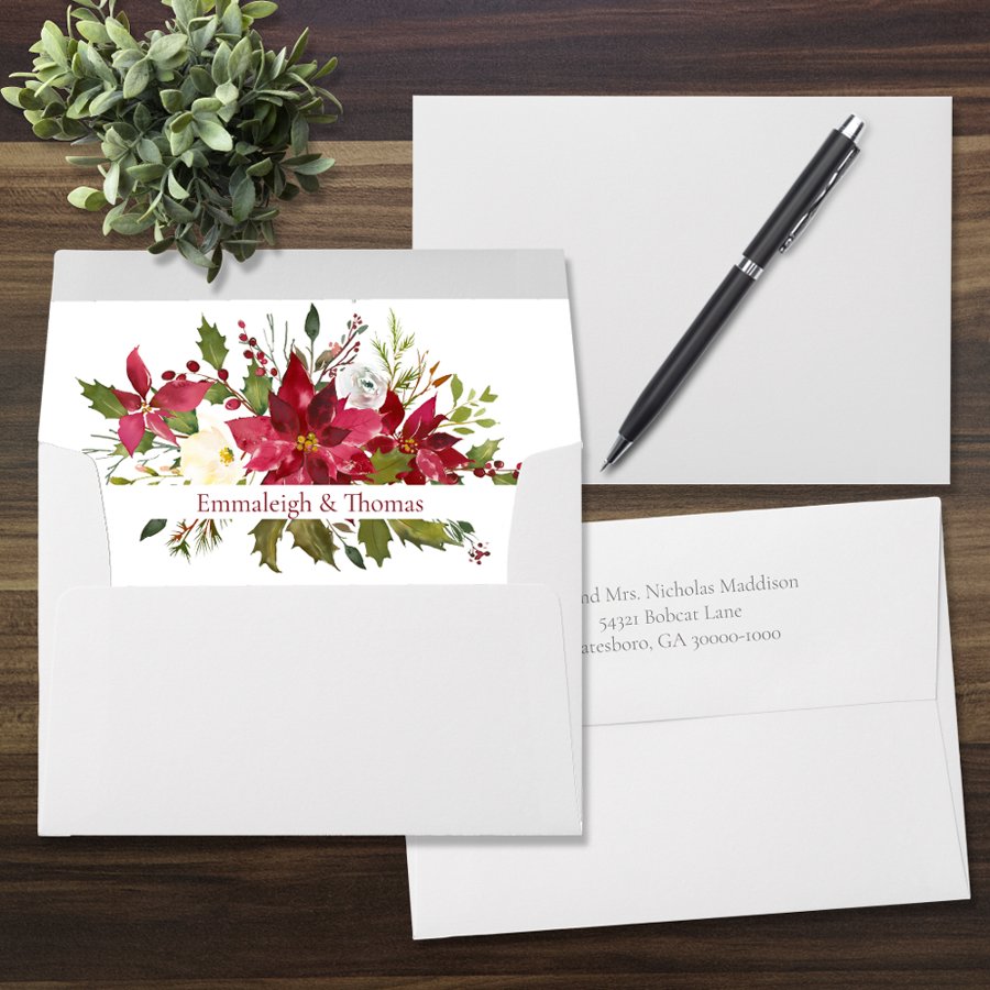 Scarlet Red Poinsettia Floral Monogram Envelope Liner